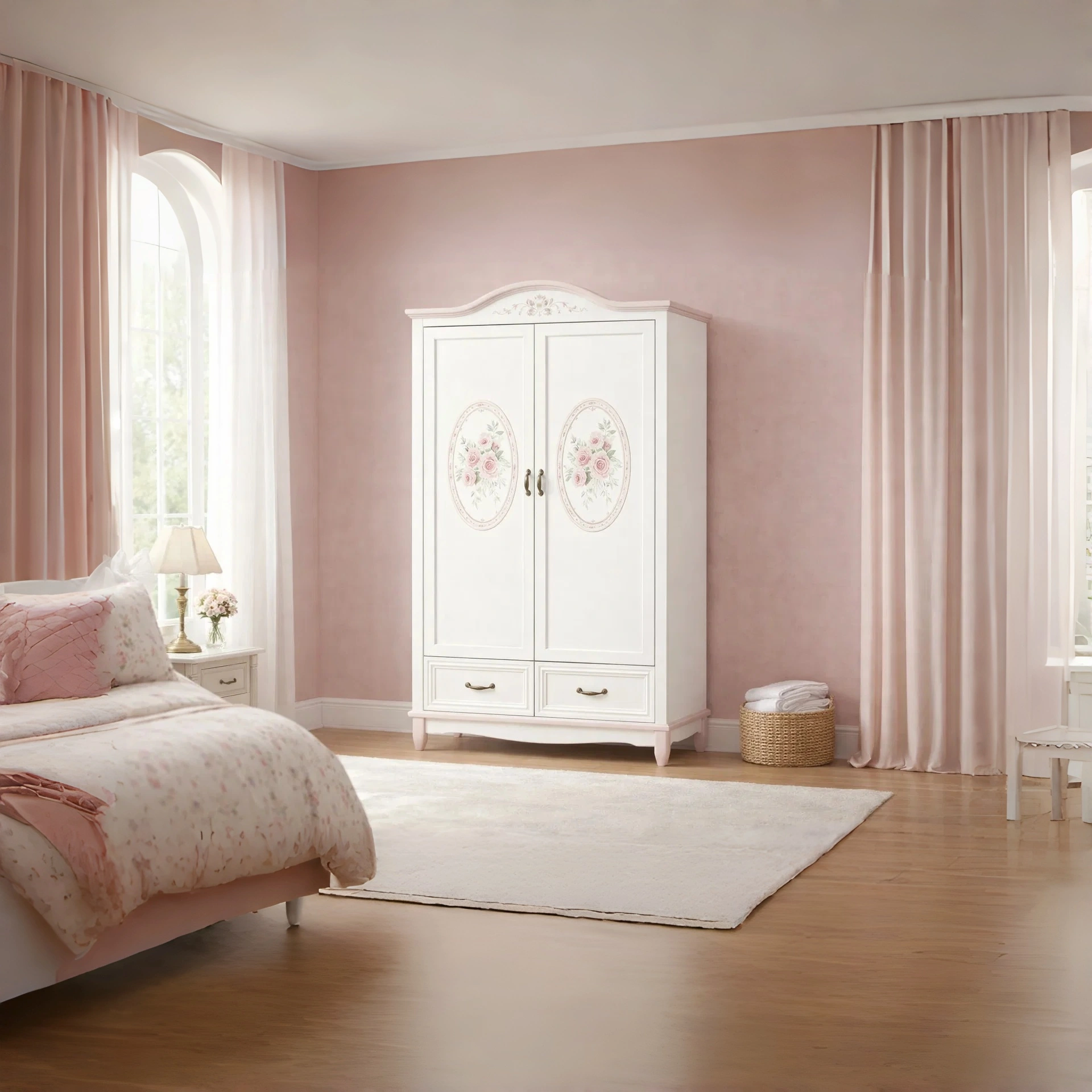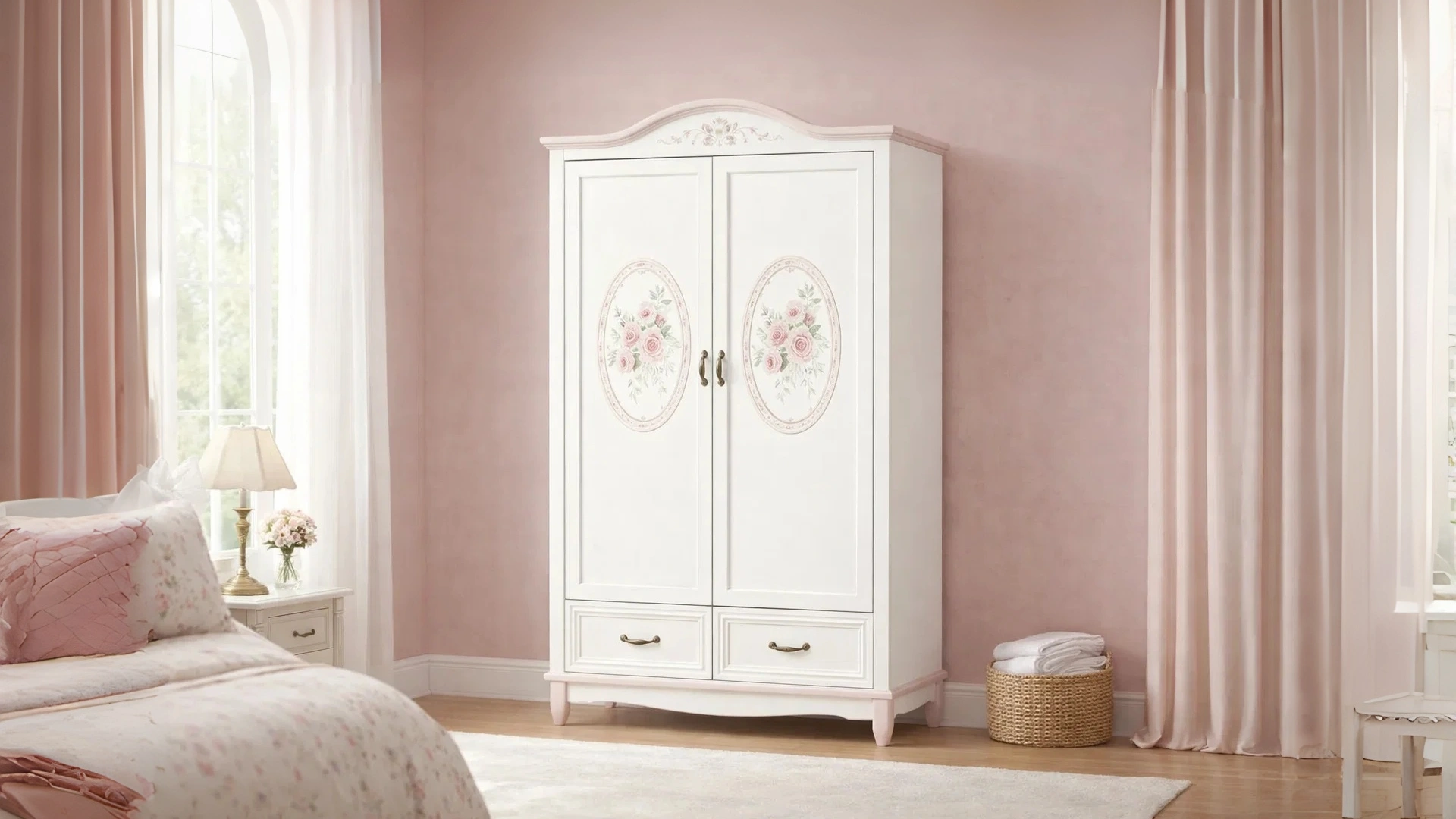 Armario blanco y rosa con diseño floral